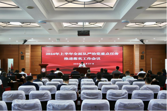 为推进全面从严治党向纵深发展,进一步总结2024年上半年全面从严治党工作成效,全力抓好下半年全面从严治党各项重点任务落实落细,6月27日下午,学校在崇德楼三楼学术报告厅召开2024年上半年全面从严治党重点任务推进落实工作会议。学校党委委员,各部门、各单位主要负责同志,各党总支、直属党支部书记参加会议。会议由党委书记兰景力主持。